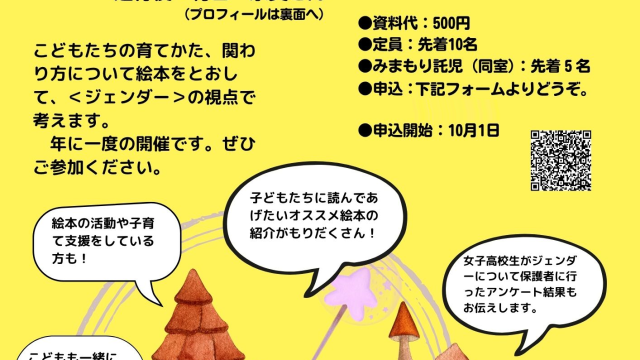 こどもたちの育てかた、関わり方について絵本をとおして、<ジェンダー>の視点で考えます。